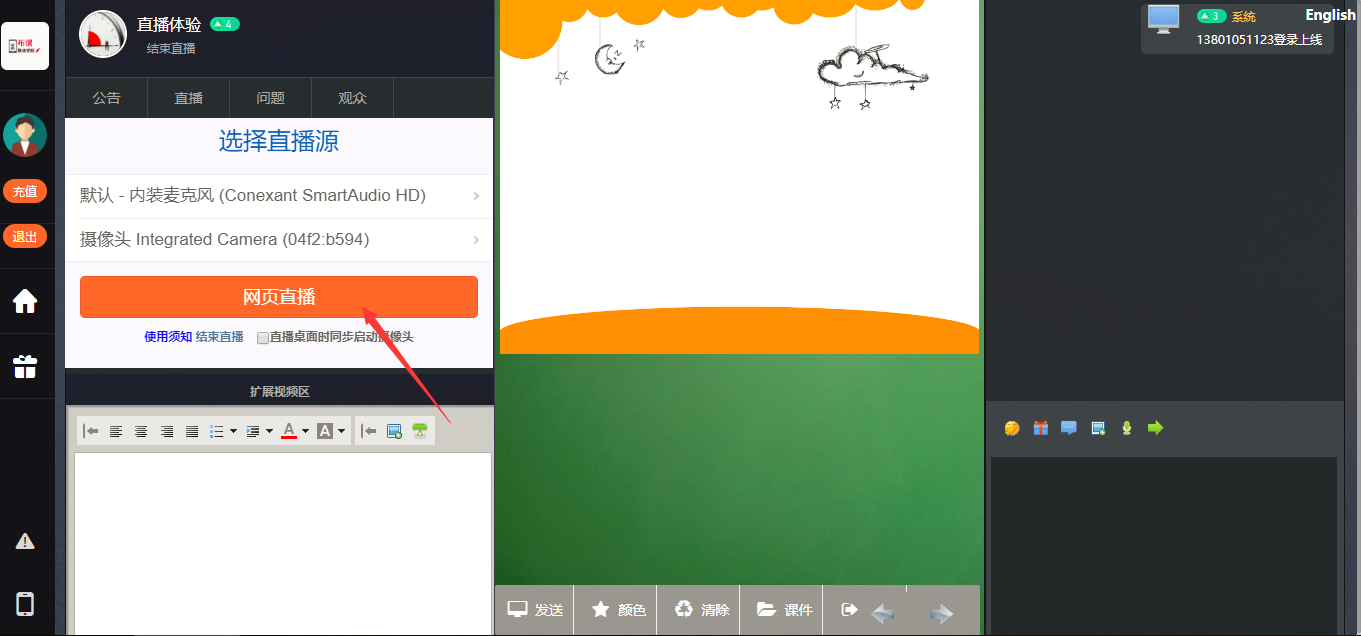 可以直播桌面,攝像頭,同時(shí)可以打開文件進(jìn)行講解,所有點(diǎn)畫操作會(huì)同步直播給用戶....